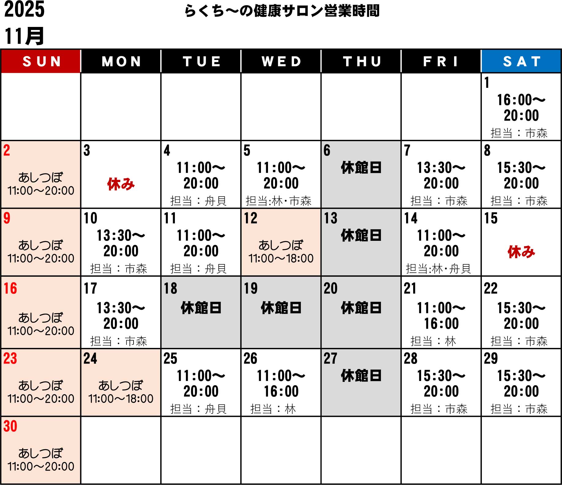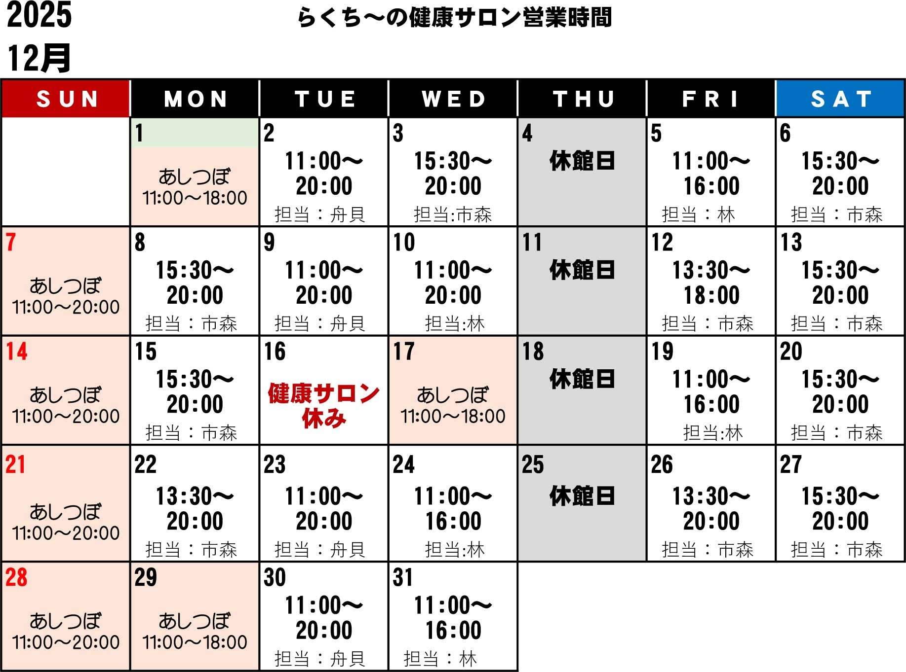 ※カレンダーに【担当:舟貝】と記載の場合は舟貝先生(男性)。