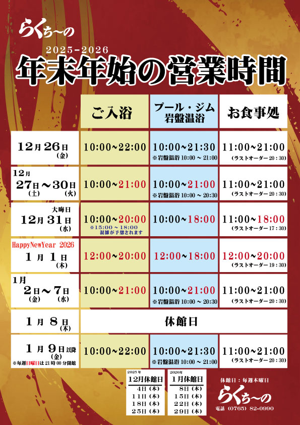 2025-2026「年末年始営業時間」